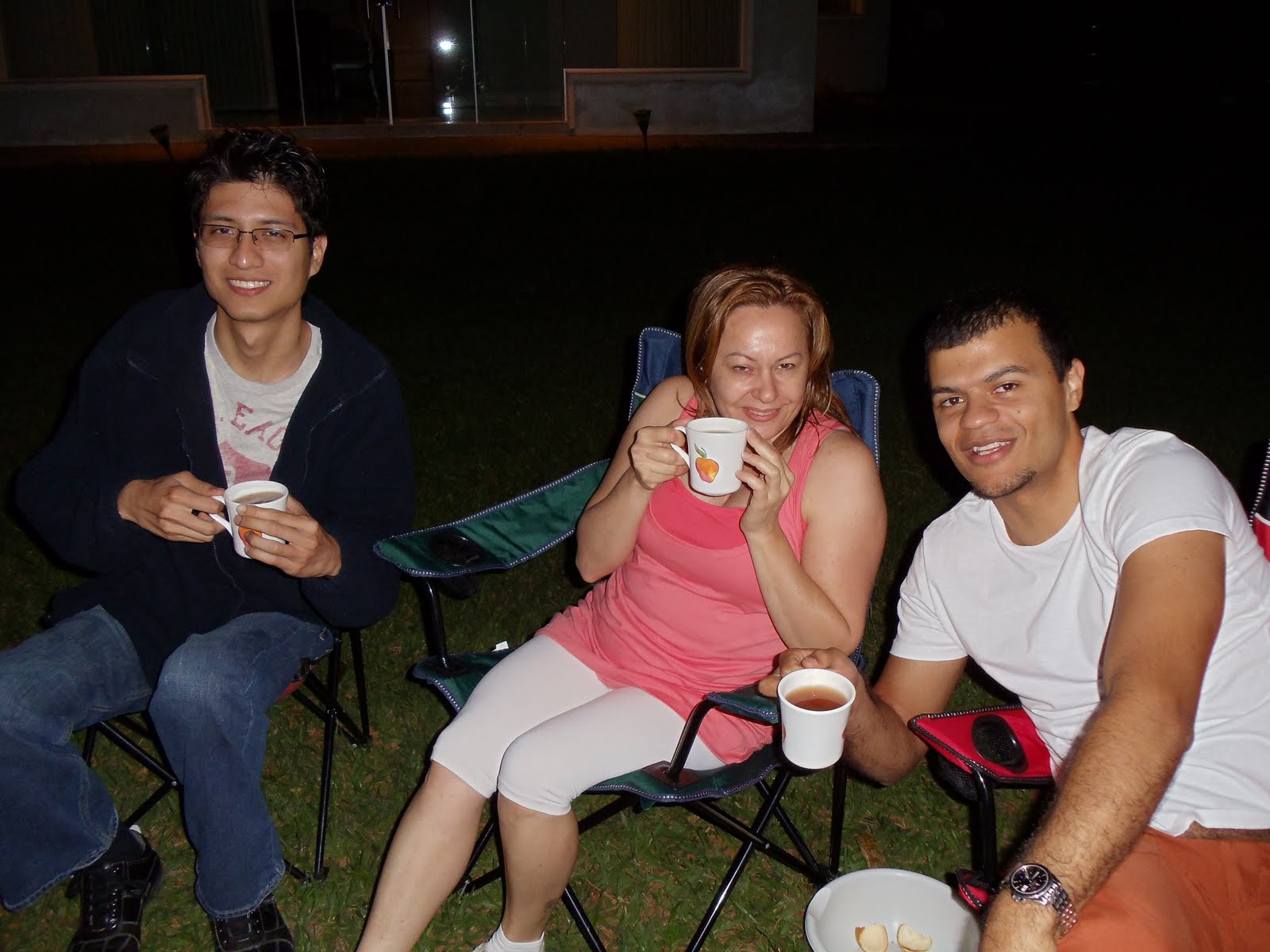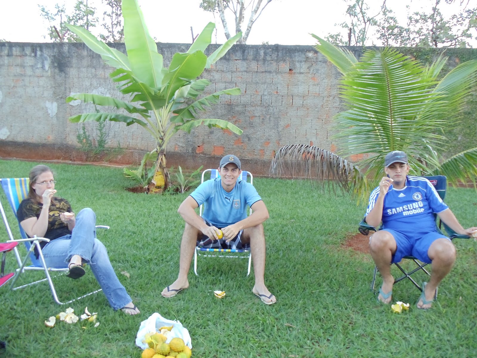 And here are some pictures of some of us eating oranges and drinking apple cider in the back yard last weekend.  Good times.